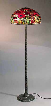 Tiffany lamp shade 18" ORIENTAL POPPY #1598 &  Bronze lamp base TWISTED VINE FLOOR # 645