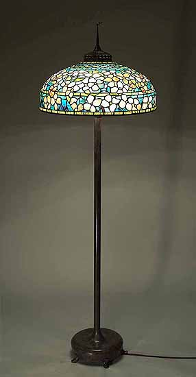 22" Dogwood Leaded Glass and Bronze Tiffany Lamp # 1504  &  Bronze casted Junior Piano Floor base # 387