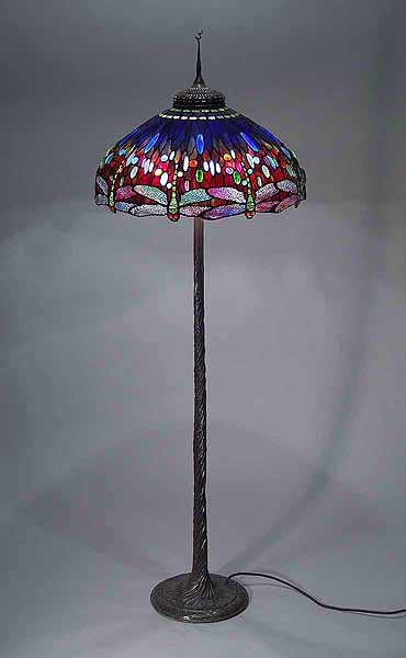 22" Dragonfly Tiffany lamp shade scarab blue #1507 & Bronze Twisted Vine floor base #645
