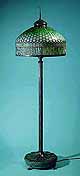 24" STANDARD GEOMETRIC (Curtain border) Tiffany lamp #1506 & SENIOR FLOOR bronze casted floor base #376