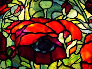 26" Oriental Poppy Tiffany Floor lamp #1902 (red) & Piano Senior Floor base #377