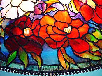 29" Peony leaded glass and bronze Tiffany lamp #603 & Piano Junior Floor base #387