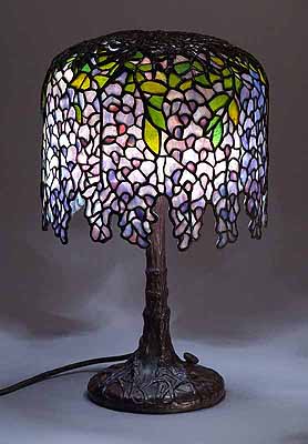 10" Blue and Pink Wisteria Leaded Glass and Bronze Tiffany Lam p #349