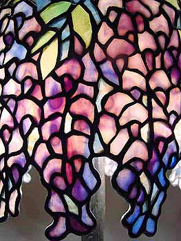 10" Pink Wisteria Leaded Glass and Bronze Tiffany Lamp #349
