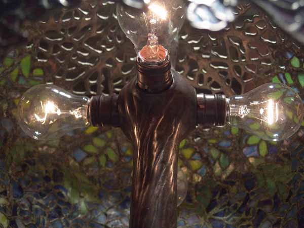 18" BLUE/ PINK WISTERIA leaded glass and bronze Tiffany lamp #342