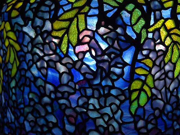 18" BLUE/ PINK WISTERIA leaded glass and bronze Tiffany lamp #342