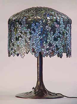 18" Wisteria leaded glass and bronze Tiffany lamp #342