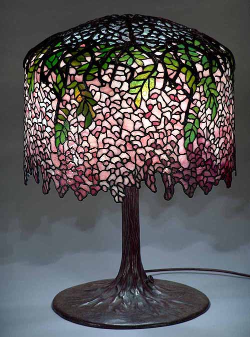 18" Wisteria burgundy leaded glass and bronze Tiffany lamp #342