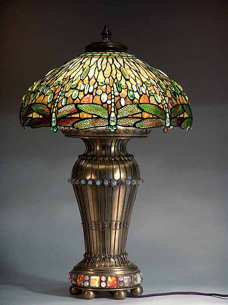 GILT BRONZE AND TURTEBACK TILE DECORATED LAMP BASE