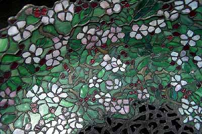 CHERRY TREE leaded glass and bronze Tiffany lamp # 351 & TREE TRUNK bronze casted lamp base #269/ 6