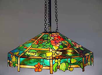 25" NASTURTIUM TRELLIS #607 Leaded glass and bronze Tiffany octagonal lamp shade