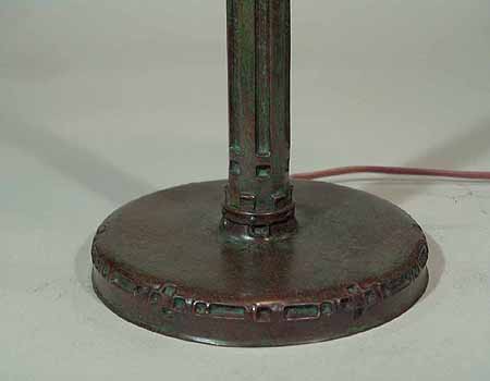 The suface of the lamp base and sockets are patinated with brown /dark green- brown Tiffany patina made in our Studio using the original recipe handed down by Tiffany Studios New York.