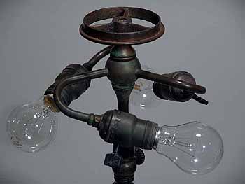 It comes ready to use in the USA with new old style cloth covered lamp cord and three standard sized US turnkey lamp sockets.