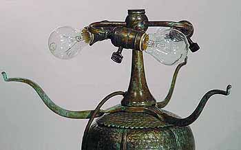 This base is wired according to US safety standards. It comes ready to use in the USA with new old style cloth covered lamp cord and standard US lamp sockets. Other standards of electrification are available at no extra cost. The suface of the lamp base and sockets are patinated with brown /dark green- brown Tiffany patina made in our Studio using the original recipe handed down by Tiffany Studios New York. No lacquer is used in the patination process.