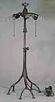 The suface of the lamp base and sockets are patinated with brown /dark green- brown Tiffany patina made in our Studio using the original recipe handed down by Tiffany Studios New York. No lacquer is used in the patination process.