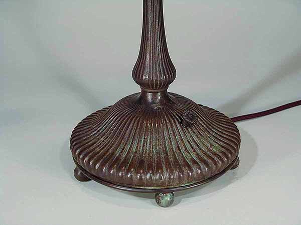 Base is wired according to US safety standards. It comes ready to use in the USA with new old style cloth covered lamp cord and standard US lamp sockets. Other standards of electrification are available at no extra cost. The suface of the lamp base and sockets are patinated with brown /dark green- brown Tiffany patina made in our Studio using the original recipe handed down by Tiffany Studios New York. No lacquer is used in the patination process.
