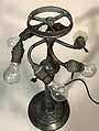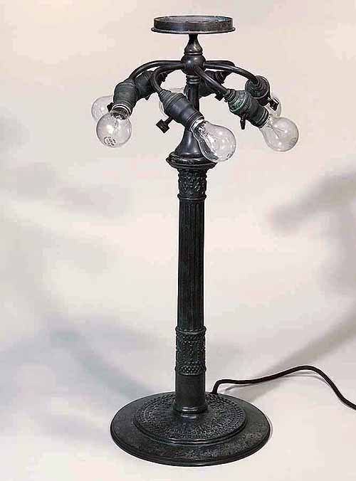 This base is wired according to US safety standards. It comes ready to use in the USA with new old style cloth covered lamp cord and standard US lamp sockets. Other standards of electrification are available at no extra cost. The suface of the lamp base and sockets are patinated with brown /dark green- brown Tiffany patina made in our Studio using the original recipe handed down by Tiffany Studios New York. No lacquer is used in the patination process.