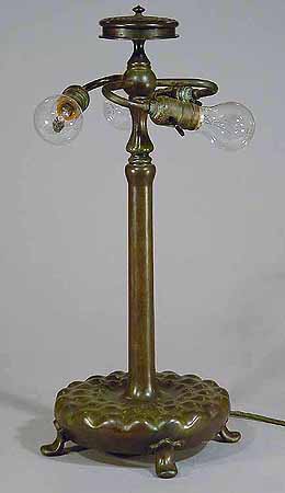 The suface of the lamp base and sockets are patinated with brown /dark green- brown Tiffany patina made in our Studio using the original recipe handed down by Tiffany Studios New York. No lacquer is used in the patination process.