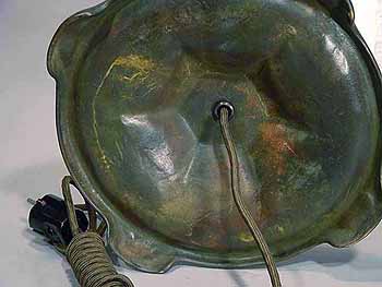 This base is wired according to US safety standards. It comes ready to use in the USA with new old-style cloth covered lamp cord and 4 US turn key lamp sockets. Other standards of electrification are available at no extra cost. The suface of the lamp base and sockets are patinated with brown /dark green- brown Tiffany patina made in our Studio using the original recipe handed down by Tiffany Studios New York. No lacquer is used in the patination process.
