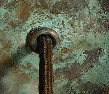 This base is wired according to US safety standards. It comes ready to use in the USA with new old style cloth covered lamp cord and standard US lamp sockets. Other standards of electrification are available at no extra cost. The suface of the lamp base and sockets are patinated with brown /dark green- brown Tiffany patina made in our Studio using the original recipe handed down by Tiffany Studios New York. No lacquer is used in the patination process.