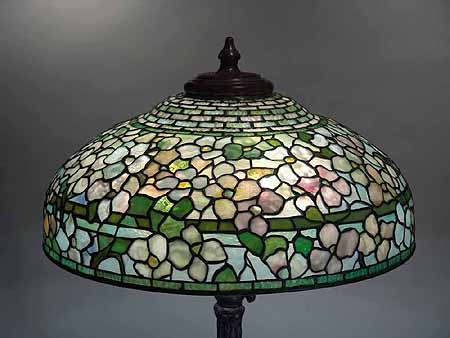 22" Dogwood Leaded Glass and Bronze Tiffany Lamp # 1504